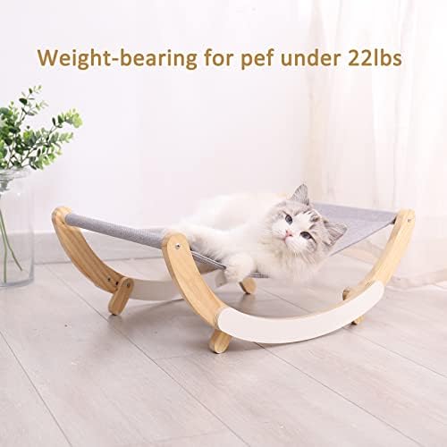 HIGH-QUALITY MATERIAL: The cat hammock bed is made of selected pine wood, which is hard and durable. The linen bed is breathable and strong. The bottom of the hammock also has a non-slip design, which is safe enough for cats.