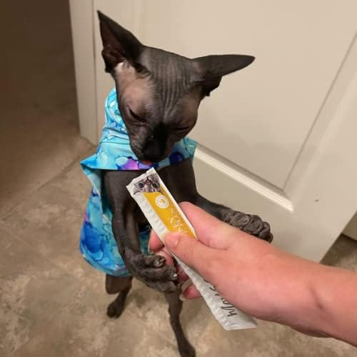 With our adult lickable cat treat, bonding with your feline companion has never been easier. The wet cat treats come in a convenient tube packaging that makes daily feeding a breeze & ensures no mess – simply open the top and squeeze out the desired amount. Not only is it easy to use, but also interactive & playful, allowing you to engage with your cat while providing them with a tasty cat lickable treat.