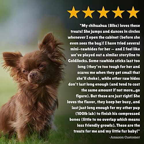 PREMIUM RAWHIDE CHEWS FOR DOGS: Our small breed dog treats are only made with the highest-quality ingredients, natural beef and restaurant-quality beef base.