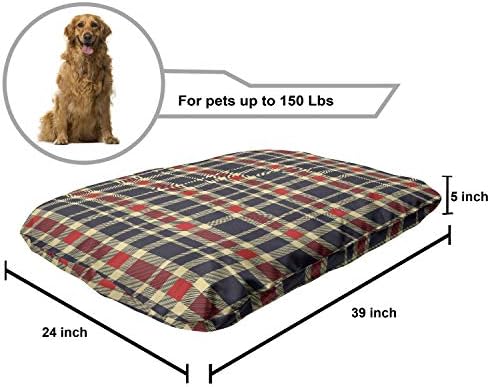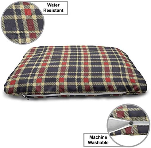 Lunarable Retro Pet Bed, Geometric Plaid Traditional Tartan Pattern Striped Checkered Vintage Design, Chew Resistant Pad for Dogs and Cats Cushion with Removable Cover, 24″ x 39″, Dark Blue Red Cream
