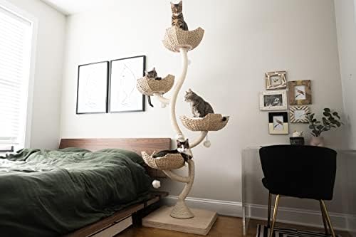 BEAUTIFUL & UNIQUE DESIGN: Unlike most cat furniture, this rope and wicker cat tree tower will enhance the look of your home. It includes over 73β of scratching area where your kitties can have fun and climb, along with four beautifully crafted, hand-woven wicker baskets containing comfortable cushions (removable and machine washable). It is perfect for your kitty to have a glorious time napping while you can enjoy looking at a beautiful piece of art that adds to the aesthetics of your home.