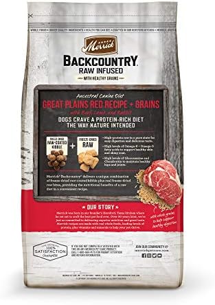 Merrick Backcountry Raw Infused Dry Dog Food Great Plains Red Recipe With Healthy Grains, Freeze Dried Dog Food