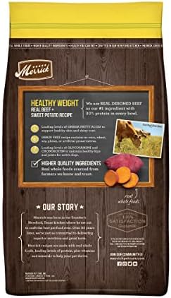 The Merrick Grain Free dog food Story is one of superior nutrition, delicious taste AND using the highest quality ingredients. It’s about staying true to our roots and staying put in our original Hereford, Texas, USA kitchen—the one where Garth Merrick started our company and where we still hand craft our natural dog food recipes today. All Merrick Grain Free dry dog food recipes start with real deboned meat and real whole foods like sweet potatoes, blueberries, peas and more to provide natural dog food nutrition that’s complete and balanced leading levels of quality protein, plus Omega-6 and Omega-3 fatty acids to ensure great looking, healthy skin and coat.