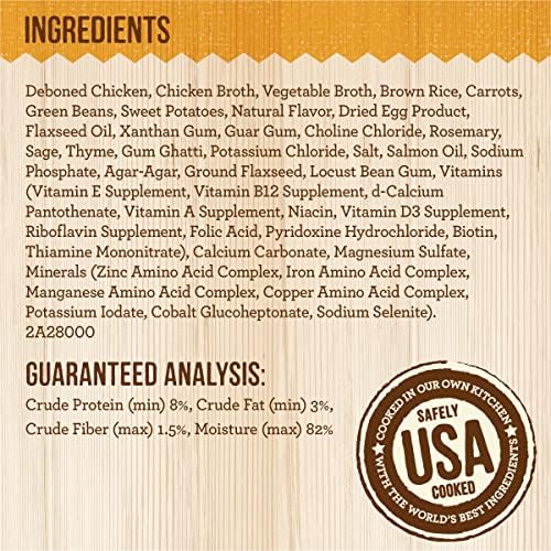 Merrick Kitchen Comforts chicken and brown rice dog food is crafted with brown rice, carrots, green beans and sweet potatoes. This is a chunky wet dog food with gravy, grain inclusive dog food