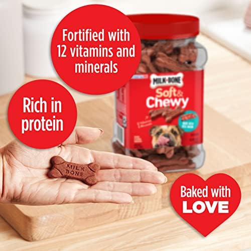 Unleash pure dog joy with mouthwatering taste and texture from a brand you trust: Bust out Milk-Bone Soft & Chewy dog treats made with real bacon. These tender, tempting treats are easy to chew and hard not to love β and not just because theyβ²re full of that savory bacon flavor. Theyβ²re also rich in protein, colored by natural ingredients, fortified with 12 vitamins and minerals, and baked with love in Buffalo, New York, USA. In other words, theyβ²re wholesome and tasty dog snacks that you can feel good about giving (and your dog will be thrilled to get). Order now to let your dog in on the fun.