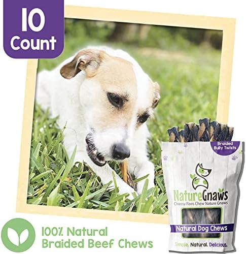 Nature Gnaws Braided Twists for Dogs – Premium Natural Beef Dog Chew Treats – Combo of Bully Sticks and Beef Gullet – Long Lasting Training Reward