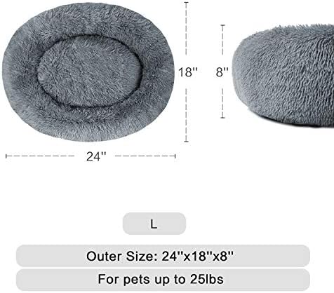 🐶【MULTIPLE SIZES & COLORS】:L(24×18”)calming bed for pets up to 25lbs, XL(32×24”)donut bed for pets up to 35lbs, XXL(36×28”)Plush bed for pets up to 55lbs, XXXL(44×34”)Round bed for pets up to 100lbs. You can choose Black, Brown, Grey, Beige, Pink, White and Khaki colors. Donut Cuddler Dog Bed Suitable for jumbo,large, medium and small dogs or cats. Please select the most suitable pet bed according to the size chart and the actual size of the pet.