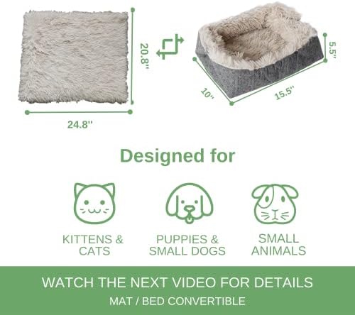 【Size & Weight】: 25″*21″*1.5″ mat, 15.5″x10″x5.5″ bed, 12 ounces, ideal for cats. Also works well for small animals, such as guinea pigs, rabbits
