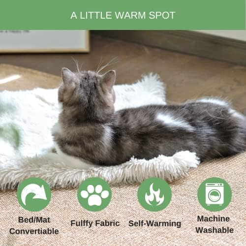 【Self-Warming】: special design traps heat; and heat reflecting liner ensures cats and dogs heated and warm. A cozy calming self warming pet pad for pets to play, nap and sleep