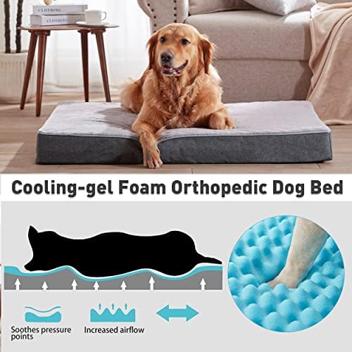 PETORREY Cooling Dog beds, Orthopedic Memory Foam Dog Beds for Large Dogs,Thick Pet Crate Mat with Waterproof Lining& Removable and Machine Washable Cover,L(35 inch,65Lbs)