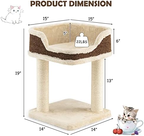 Compact & Stable Cat Tree: The square base dimensions: 14″ x 14″ x 1″ (L x W x T), the compact and simple design ensures the stability of the cat tree without taking up too much space, and can hold up to 22 pounds.