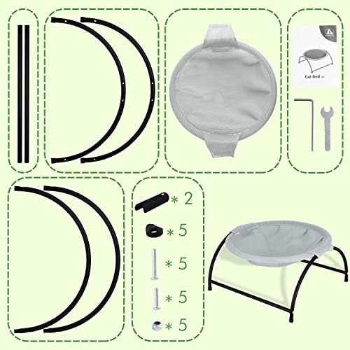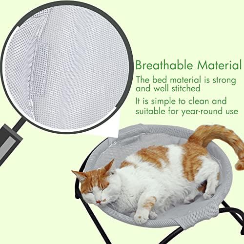 PHYEX Cat Bed Elevated Pet Hammock for Kitty Cat Small Dog, Easy Assembly Raised Cat Cot for Indoors & Outdoors, Round Gray