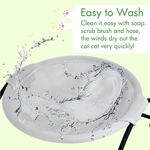 DIMENSION & CARE: PHYEX raised cat bed size – 16″L x16″W x 8.4″H (Frame), up to 25 lbs. The frame is constructed of all metal, which is sturdy and plenty of room for a big cat! You can clean it with soap and water. The fabric is machine washable.