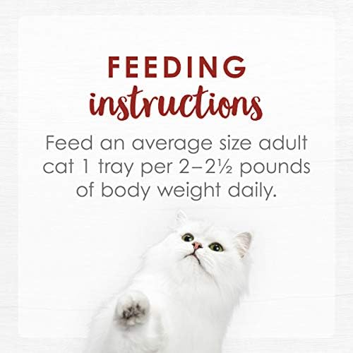 106 percent complete and balanced nutrition for adult cats. Packaged in convenient trays for easy serving
