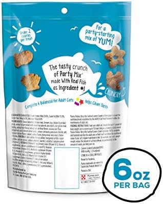 Start the party with Purina Friskies Party Mix Seafood Lovers Crunch adult cat treats. Each crunchy shape packs in the sea’s bounty with real ocean whitefish as the number 1 ingredient and the flavors of lobster, scallops and shrimp, blending together the delicacies she finds irresistible. The sensational seafood taste in these cat treats gives your cat a reason to celebrate, while the wholesome goodness helps you feel good about treat time too. Every bite of these cat treats is crafted to unleash her playful side and provide an opportunity for you to spend quality time together. An enticing aroma tempts her to investigate, and the appealing color and fun shapes encourage her to pounce and chase after these cat treats, keeping you both entertained. The satisfying crunch of these cat treats delivers the texture she craves and helps keep her teeth clean. Your cat explores every inch of her world. Help her make her next big discovery with the delicious flavor of these adult cat treats.