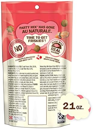 Celebrate all of life’s little moments with your cat when you offer Purina Friskies Party Mix Natural Yums With Real Salmon With Added Vitamins, Minerals and Nutrients adult cat treats. Made with real fish as the number 1 ingredient, these wholesome treats for adult cats give your feline friend the mouthwatering seafood taste she wants. Serve these crunchy cat treats as a cat snack to get her purring between meals, or include a few Purina cat treats along with her dinner to show your cat just how much she means to you. Fun shapes pique her interest as she crunches away at these yummy Friskies cat treats, which contain no artificial colors, flavors or preservatives. Tear open a cat pouch of Purina Friskies Party Mix Natural Yums With Real Salmon adult cat dental treats to delight your precious pet with tasty flavor and high-quality ingredients.