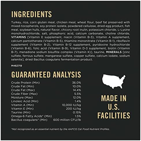 Satisfy your indoor cat’s special nutritional needs while controlling hairballs with Purina Pro Plan Indoor Hairball Turkey and Rice Formula adult dry cat food. This cat dry food formula serves up high-protein nutrition to help her maintain a healthy weight, and it contains high-quality protein sources, including real turkey as the first ingredient. Natural prebiotic fiber nourishes specific intestinal bacteria for digestive health. Every ingredient in this Purina dry cat food is carefully chosen for a specific purpose, giving you confidence in the food you serve your cat. This dry cat food delivers essential nutrients, including antioxidants to help support her healthy immune system, and it provides 100 percent complete and balanced nutrition for adult cats. Omega-6 fatty acids and vitamin A nourish her skin and coat to give her a healthy look, and this formula is made with no artificial colors or flavors. Unleash your cat’s natural greatness when you add this formula to her daily diet.