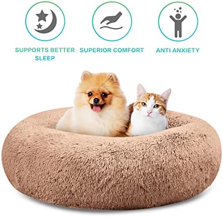 Better Than Most Pet Beds On The Market: Look for a quality pet bed to help eliminate your pets’ suffering from anxiety when sleeping? No need to struggle with cheap flimsy donut pet bed. This donut bed is built with durable, much thicker plush faux fur exterior and premium high quality fibers to keep shape up to 3X longer than others. Knitted and fabricated in top-notch manufacturer, which is the same outsourcer of the most popular original calming bed brand as seen everywhere.