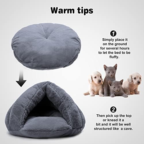 🐱【INDIVIDUALLY PACKED】Each pet cave bed is individually packed in a vacuum bag to keep clean. Place the self warming cat nest on ground to let the cat sleeping bag fluffy after picking it up from the package, then shape the warm cat bed into cave.