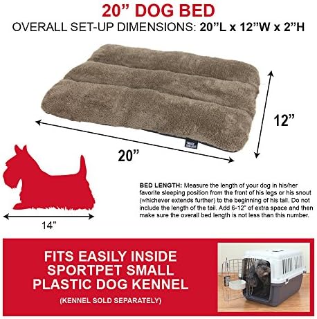 You may not let your furry sidekicks on all the furniture in the house, but they deserve to take it easy as well, right? Sportpet waterproof dog beds are snuggly soft and cushioned for all day comfort, with a waterproof base to keep the occasional accident contained. Plus they are perfectly designed to fit inside your SportPet dog kennel (sold separately). Even better? The bed is 100% machine washable just one more way sportpet is looking out for the pet loverβs day. Sizing note: for best fit, measure your pet in his or her favorite sleeping position, measuring from snout to base of tail. Add 6-12β to the number for the minimum length bed youβll need. Then just consult our handy chart. Warning: do not allow children to play with or near this item. This is not a toy for children. If product becomes damaged please discard immediately. This product is designed for a specific and intended use. Do not use this product for anything other than its intended use.