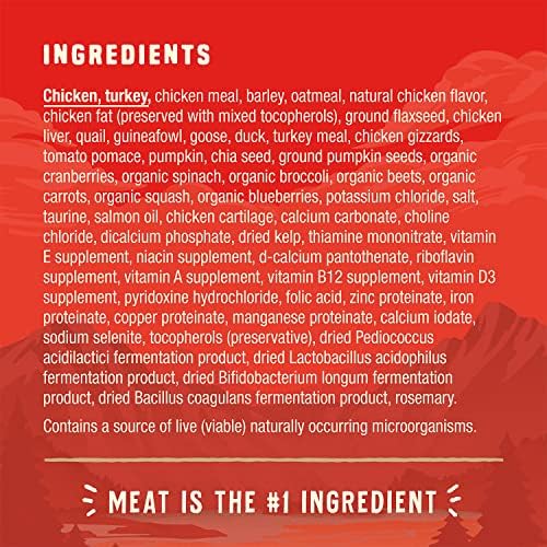 Whole Prey Ingredients: Feeding your pet a diet similar to what their ancestors enjoyed in the wild helps your pet thrive; 80% of the recipe’s protein comes from animal muscle meat, organ meat and cartilage