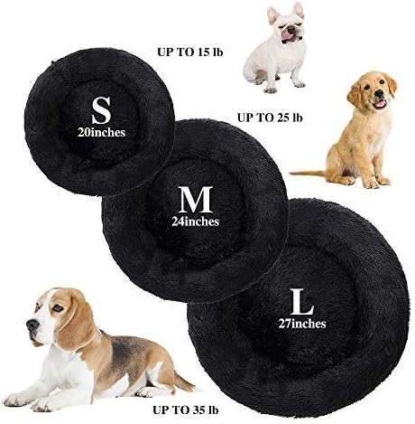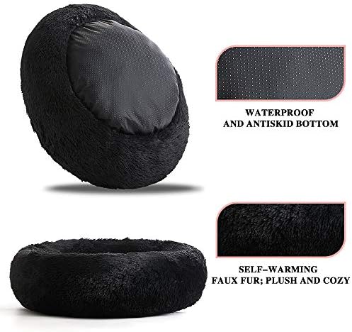 SunStyle Home Soft Plush Round Pet Bed for Cats Or Small Dogs Cat Bed Self Warming Autumn Winter Indoor Sleeping Cozy Pet Bed for Small Dogs and Cats Donut Anti Slip Bottom (S(20″x20″), Black)