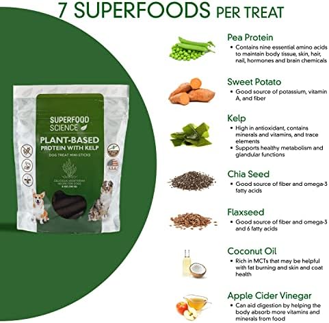WORKS LIKE AN DIGESTIVE SUPPLEMENT FOR DOGS: Feel good about giving your dog an extra treat or two. Each piece of our plant-based protein dog treats contains kelp combined with healthy superfood ingredients to help optimize your dog’s digestive system.