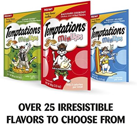Reward active cats with a scrumptious playtime snack that is 100% nutritionally complete for adult cat maintenance and helps with tartar control. Featuring a tempting mix of flavors, such as chicken, cheddar and catnip, TEMPTATIONS MixUps Cat Treats CATNIP FEVER Flavor is a great-tasting playtime reward. Plus, at only 2 calories per treat, your feline friend can enjoy the crunchy outside and soft center anytime. America’s #1 cat treat* is the perfect way to show your feline friend how much you care. (* Based on sales data)