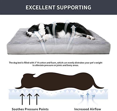 6 Sizes Choice: The XS size dog bed measures 20″x15″x3″, recommended for dogs or cats up to 15 lbs; the S dog bed measures 24″x18″x3″, recommended for dogs or cats up to 20 lbs; the M dog bed measures 30″x20″x4″, recommended for dogs up to 40 lbs; the L dog bed measures 36″x27″x4″, recommended for dogs up to 70 lbs; the XL dog bed measures 44″x32″x4″, recommended for dogs up to 90 lbs; the XXL dog bed measures 50″x36″x3″, recommended for dogs up to 100 lbs.