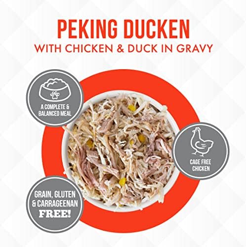 Get your ducks in a row and press your lucken with some Peking Ducken. Chunks of duck breast and chicken breast that are free of added antibiotics and hormones. They are also cage free . Your cat might enjoy it so much that he/she will “quack” you up by licking the bowl clean!