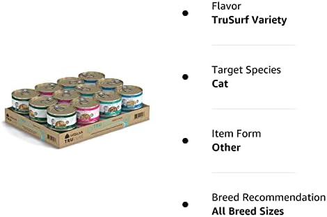 TruSurf, a Variety Pack with our favorite TruLuxe Fish based recipes β 24 pack of 3oz wet canned cat foods, including Mediterranean Harvest, Pretty in Pink, Honor Roll & Meow Me A River (6 of each 3oz can). All recipes in this variety pack are grain-free and poultry-free. TruLuxe by Weruva features some of the most lavish ingredients around that you will see as soon as you pop the top on a can. Picky cats canβt resist this unique selection of seafood, including Freshwater Basa, Pink Salmon, Saba & Whole Meat Skipjack Tuna.