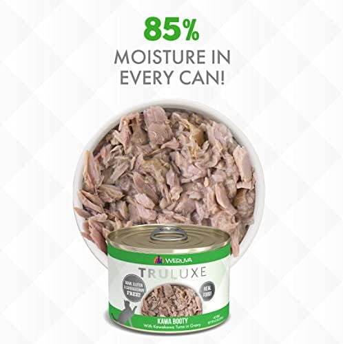 Meet Weruva: Weruva was founded over ten year’s ago by David & Stacie Forman and is still proud be family owned and operated. WeRuVa was inspired by and named after the founder’s three rescued cats; Webster, Rudi and Vanessa. With the search for “The Best Cat Food Under the Sun” never seeming to end, David & Stacie thought, “Let’s give it a shot ourselves ” and gathered the best ingredients from around the world, formulated some fantastic recipes and created Weruva. Naturally, when they were lucky enough to have their rescued dog Baron enter the family, they decided to expand our products to include dog food. Our desire for more innovative, healthy pet products could not be stopped and we continued to dream up and produce some of the best products for pets and their people. Today, we have expanded our product offerings to include four cat wet food brands, two dog wet food brands, dry dog food, treats, pumpkin supplements and even litter! Quality Control, Safety & Ingredients: Weruva always strives to be more than just a pet food company. We are obsessive over Safety and Quality Control and only produce our products in BRC/USDA Approved Facilities; arguably the highest standards for human-food production. We also source responsible and sustainable raw materials. You will be happy to know Weruva uses Cage-Free Chickens, Grass-Fed Beef & Lamb, and Wild-Caught Fish. Did we mention everything is GMO-Free? Learn about TruLuxe Grain-Free: Weruva’s TruLuxe cat food is the newest to our family of brands,consisting of five of Weruva’s original, old-time favorites as well as five new and exciting formulas. This line features formulas with unique and delectable fish like Basa, Saba and Pink Salmon. You will also find formulas with grass-fed Australian Beef, grass-fed New Zealand Lamb and cage-free Turkey. Let your cat indulge in these highly palatable and unique offerings that are all made in a facility that also makes people food! What is Kawa Booty? AKA Mediterranean Harvest without the veggies . The sure fire hit with the kitties is made with dolphin safe, wild caught kawakawa tuna. Kawakawa tuna is small breed, wild caught and sustainable. The finickiest of cats will jump on in! And hey, it looks so good you may dive in too!Guaranteed Analysis:Protein (min) 10%, Fat (min) 1.6%, Fiber (max) 0.5%, Moisture (max) 84%, Ash (max) 2.0%, Taurine (min) 0.05%AAFCO Statement:This cat food is formulated to meet nutritional levels established by the AAFCO cat food nutrient profiles for adult maintenance.
