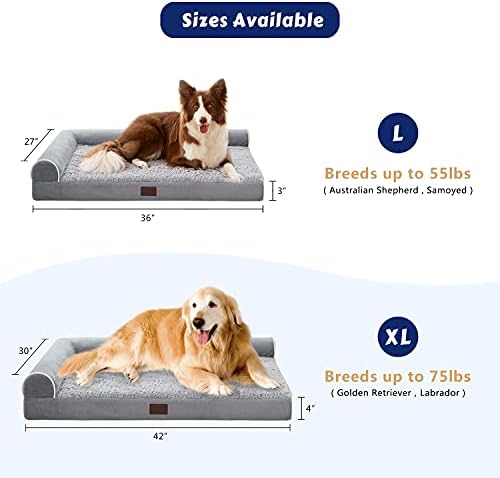 🐩【SIZE REFERENCES】Large dog beds 42” x 30″ x 7.5”(4″Base & 3.5″ Bolster) for medium, large dogs up to 80 lbs; The Orthopedic dog bed’s sleeping surface measures approximately 38 x 26″, such as Labrador Retriever, Standard Poodle, German Shepherd. Not recommended for chewer dogs or chewing-lovers