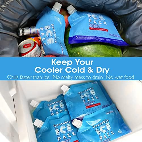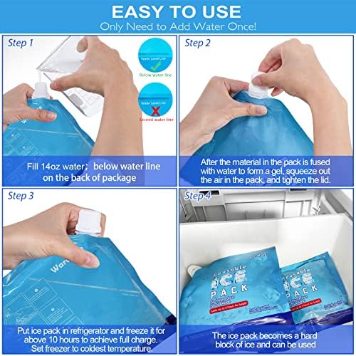 【Easy to use 】- Filling these thin reusable cooler packs is easy freezy! Simply, add water once, shake, screw cap on, sooner ice pack filled cooling gel mixture; freeze until ready to use; Ice packs will turn into a solid block when frozen; The powerful cooling gel mixture-filled ice pack chill faster retains coldness much longer than ice.