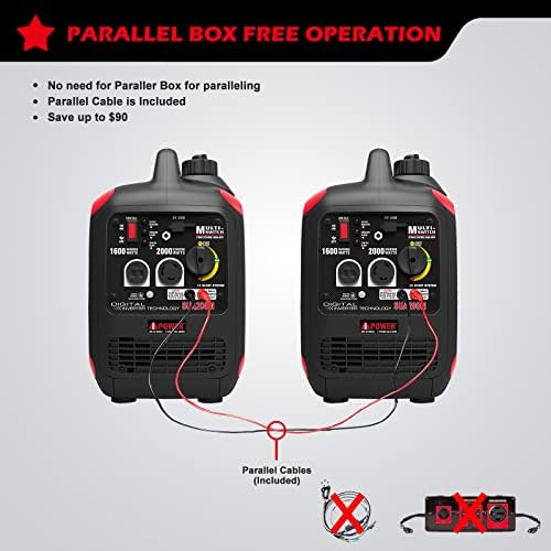 A-iPower Portable Inverter Generator, 2000W Ultra-Quiet RV Ready, EPA Compliant, Small & Ultra Lightweight For Backup Home Use, Tailgating & Camping (SUA2000iV)
