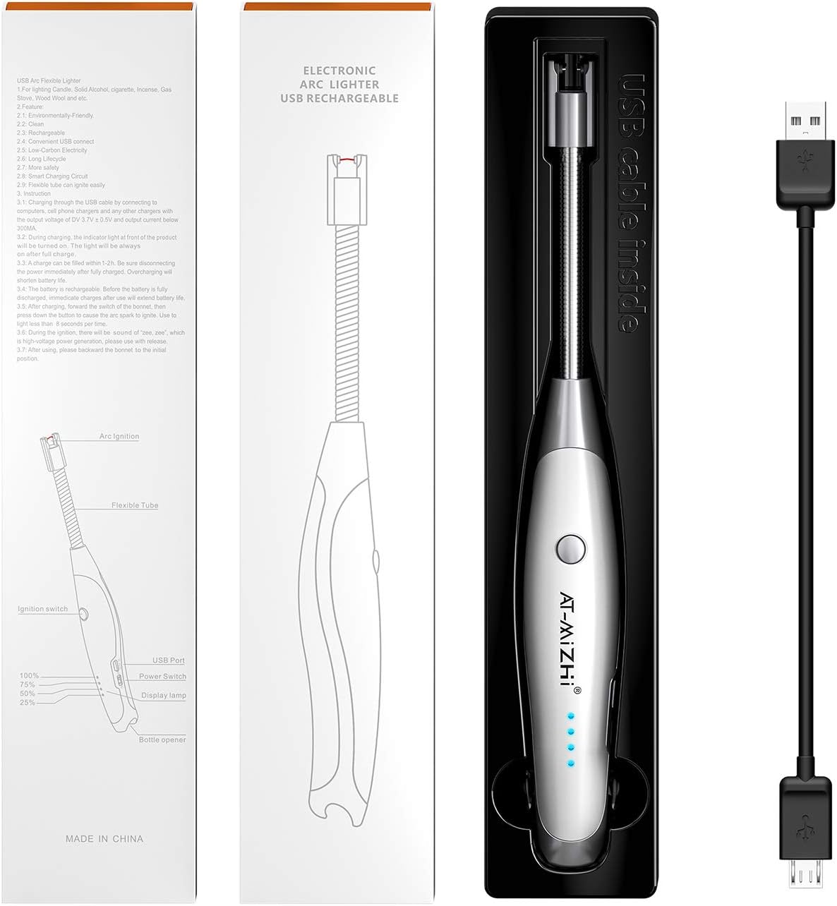 🎄【Flexible Long Lighter & Reusable Lighter】The 10cm 360 degree bends long neck electronic lighter is especially for you to reach the very low candle-end in the jar. No more waste of your lovely beautiful candle ends with good smells. Reusable lighter after recharged, replacing the match or matchstick and lighter pack from now on.
