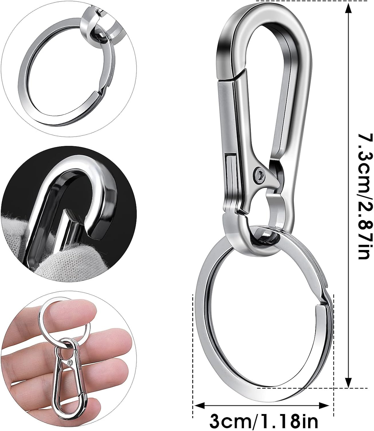 【Sturdy material】Metal heavy duty key chain is made of zinc alloy, polished with anodized surface, smooth and shiny, concise and elegant design.