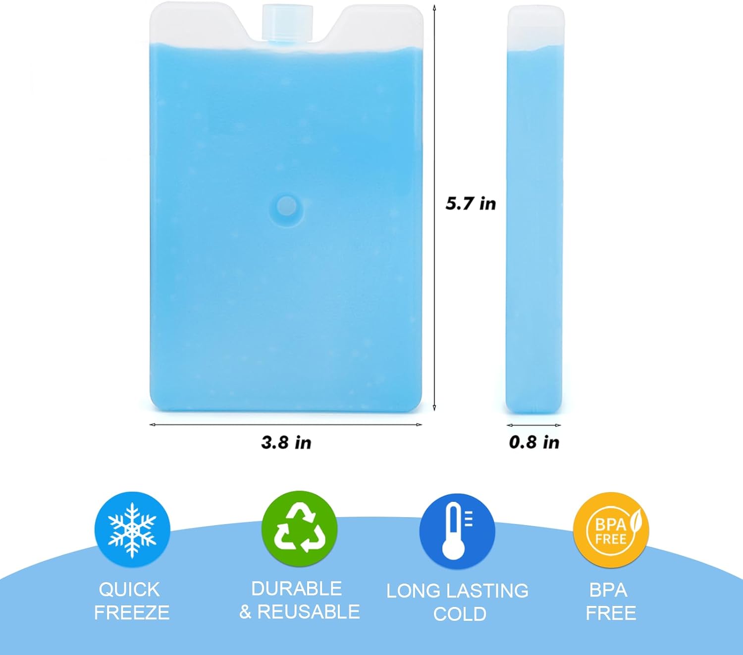 Compact Design: Our freezer packs are designed to be space-saving and highly efficient. Measuring at approximately 3.8 x 5.7 x 0.8 inches per pack, they are the perfect size to fit into any lunch bag, cooler, or picnic basket.