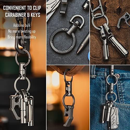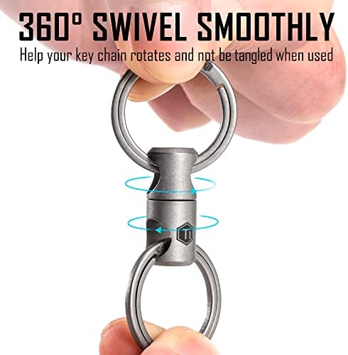【NO TANGLE】 360° swivel keychain connector with titanium key ring on both ends help your keys rotate and not be tangled when used; No more fumbling or twisting keys, flashlights, or tools; A must have for everyday carry