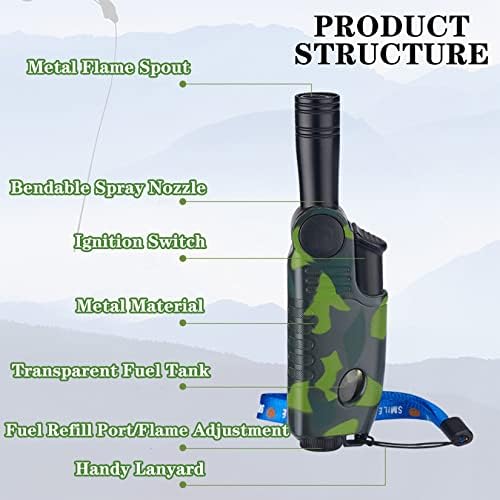 【CREATIVE & THOUGHTFUL DESIGN】1. 45° rotatable spitfire head can adapt to more use scenarios. 2. Transparent fuel tank is convenient for you to refill the fuel in time. 3. Convenient lanyard, more convenient to carry outdoors.