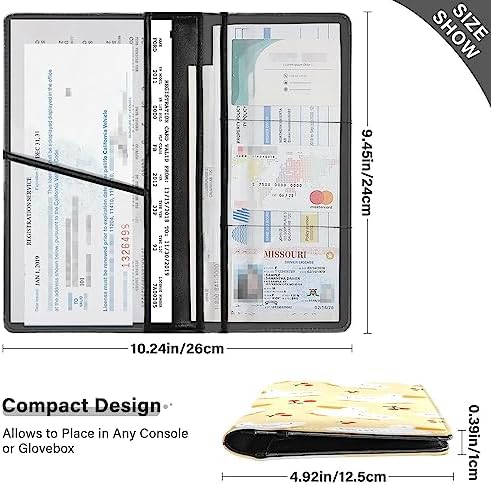 【Perfect Size】Open size10.24×9.45Inch,Close size4.92×0.39Inch,whether men or women will not feel too big or too bulky when holding it.This elegant and chic registration holder for car will fit into glove compartments,sun visors,door holders,consoles,etc.