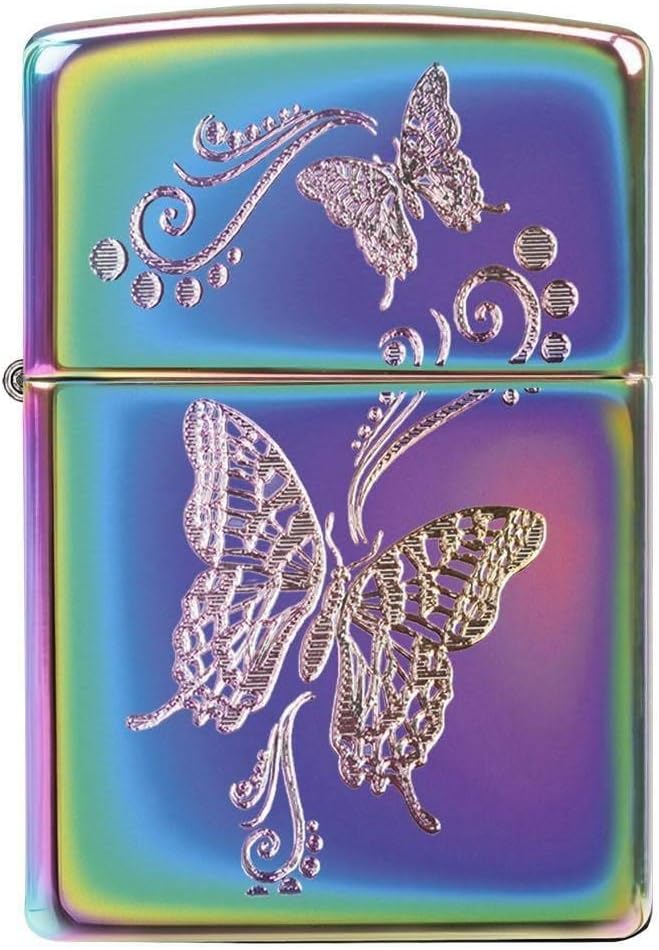 Pick your favorite butterfly design from this collection. The butterfly lighters are created using three of Zippo’s imprint methods; auto two-tone, auto engraving, and color image. These unique designs are all placed on Brushed Chrome, Satin Chrome, and Multi Color cases. Each lighter has a bottom stamp signifying the year it was made, is refillable, and is backed by Zippo’s famous lifetime . All windproof lighters are American made in our Bradford, PA factory and come packaged in a gift box.