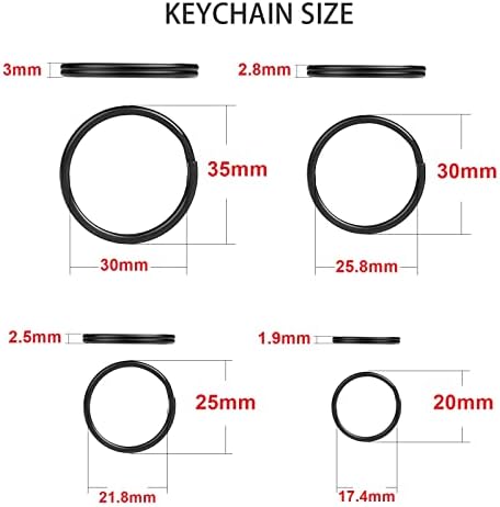 [Metal Key Rings Assorted in 4 Sizes] This Round key rings assorted is made of premium Iron in 4 sizes: 3/4 inch (20mm) X 10PCS + 1 inch (25mm) X 10PCS + 1.2 inch (30mm) X 10PCS + 1.37 inch (35mm) X 10PCS in outter diameter. Round split style design,Color: Black, Total 40pcs. It can meet most of your needs in daily life. Convenient and save your money !
